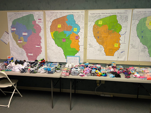 In July, Fayette Democratic Women did not have a regularly scheduled member meeting. Instead they came together to purchase 3150 new pairs of socks and underwear to Bloom Closet in Fayetteville, GA.